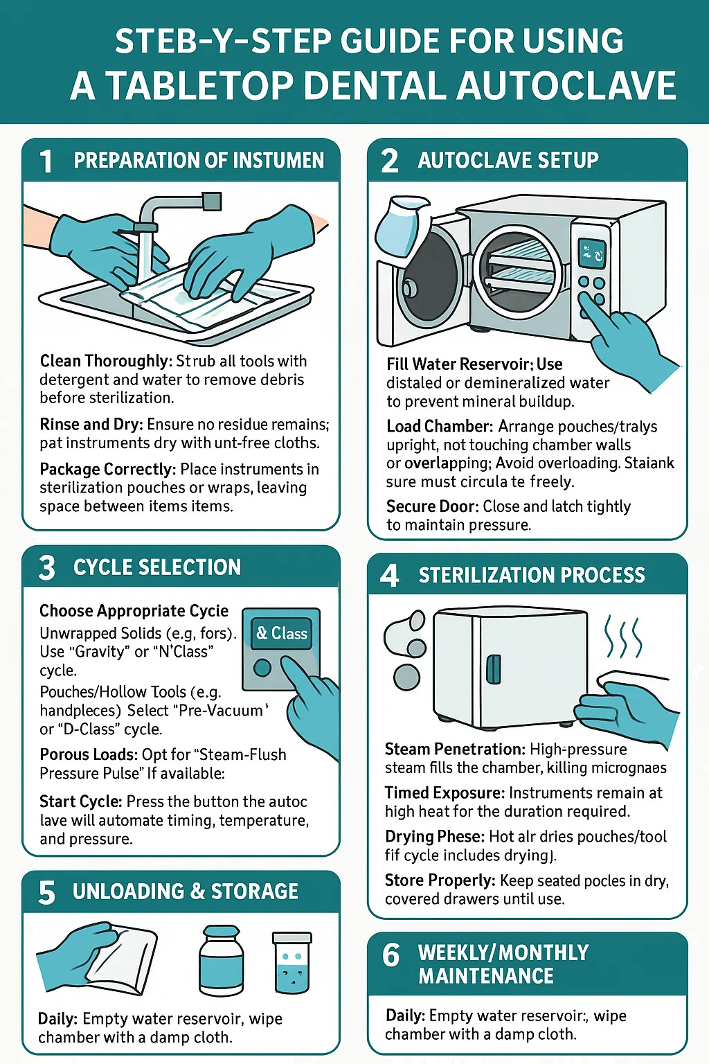 Oto przejrzysty przewodnik krok po kroku dotyczący korzystania z pliku stołowy autoklaw dentystyczny :