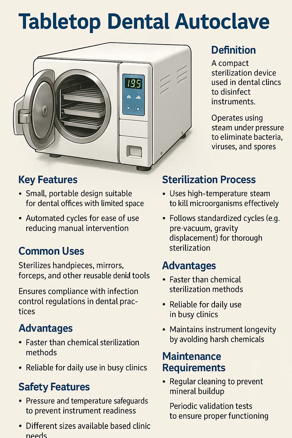 Kompaktowe urządzenie sterylizacyjne stosowane w gabinetach stomatologicznych do dezynfekcji instrumentów.